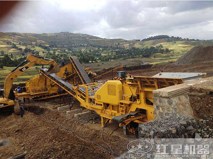主要破碎設備:顎式移動破碎機、反擊破+振動篩移動破